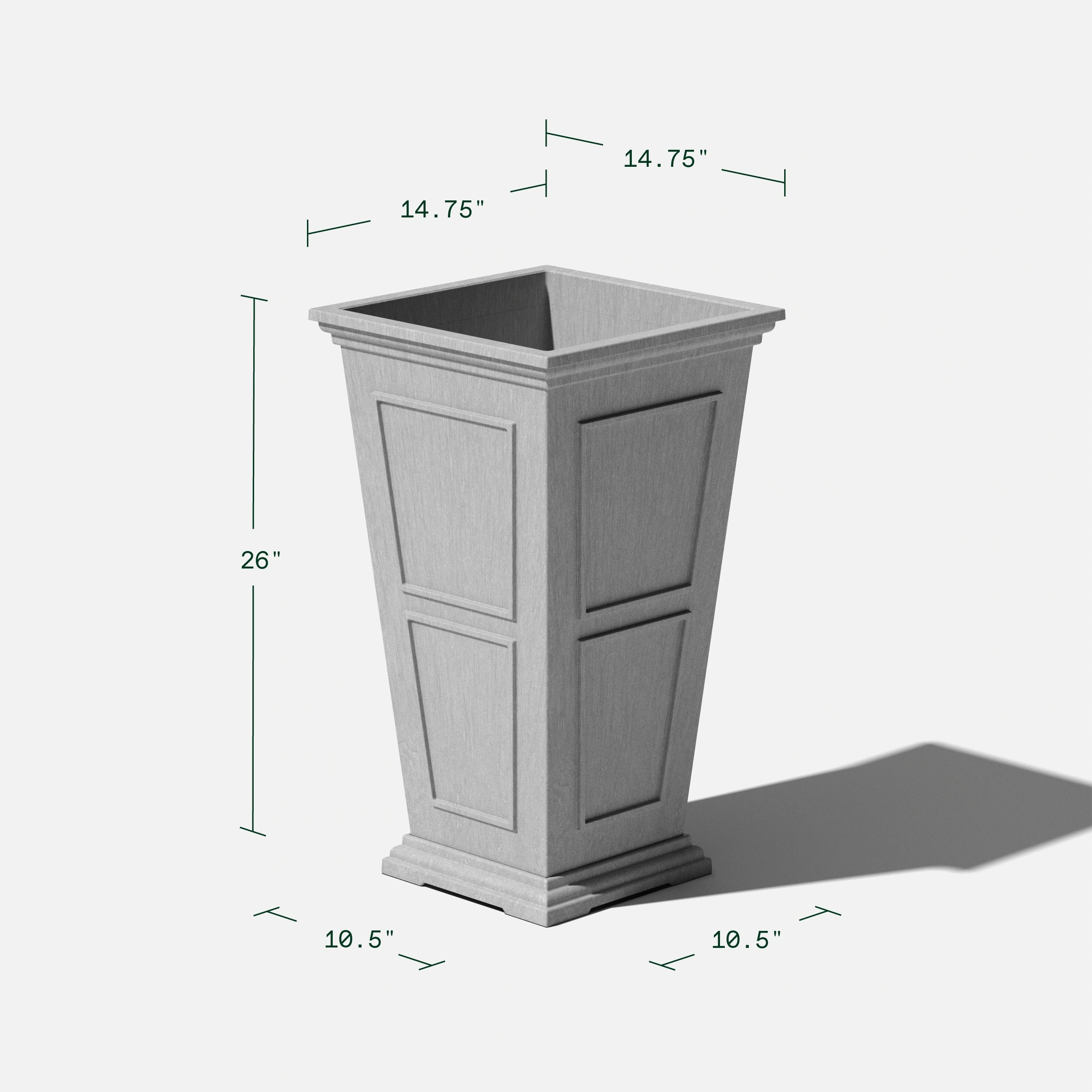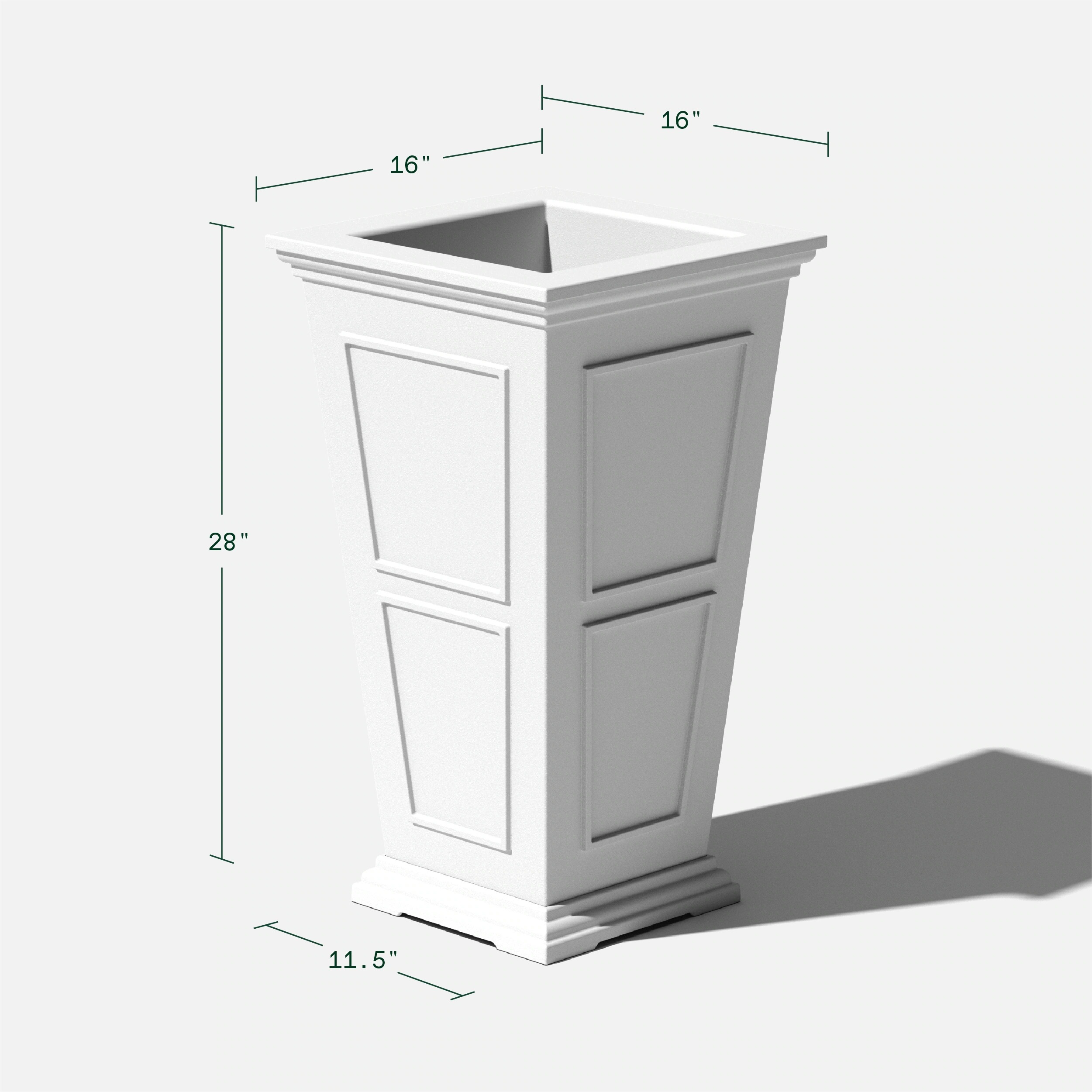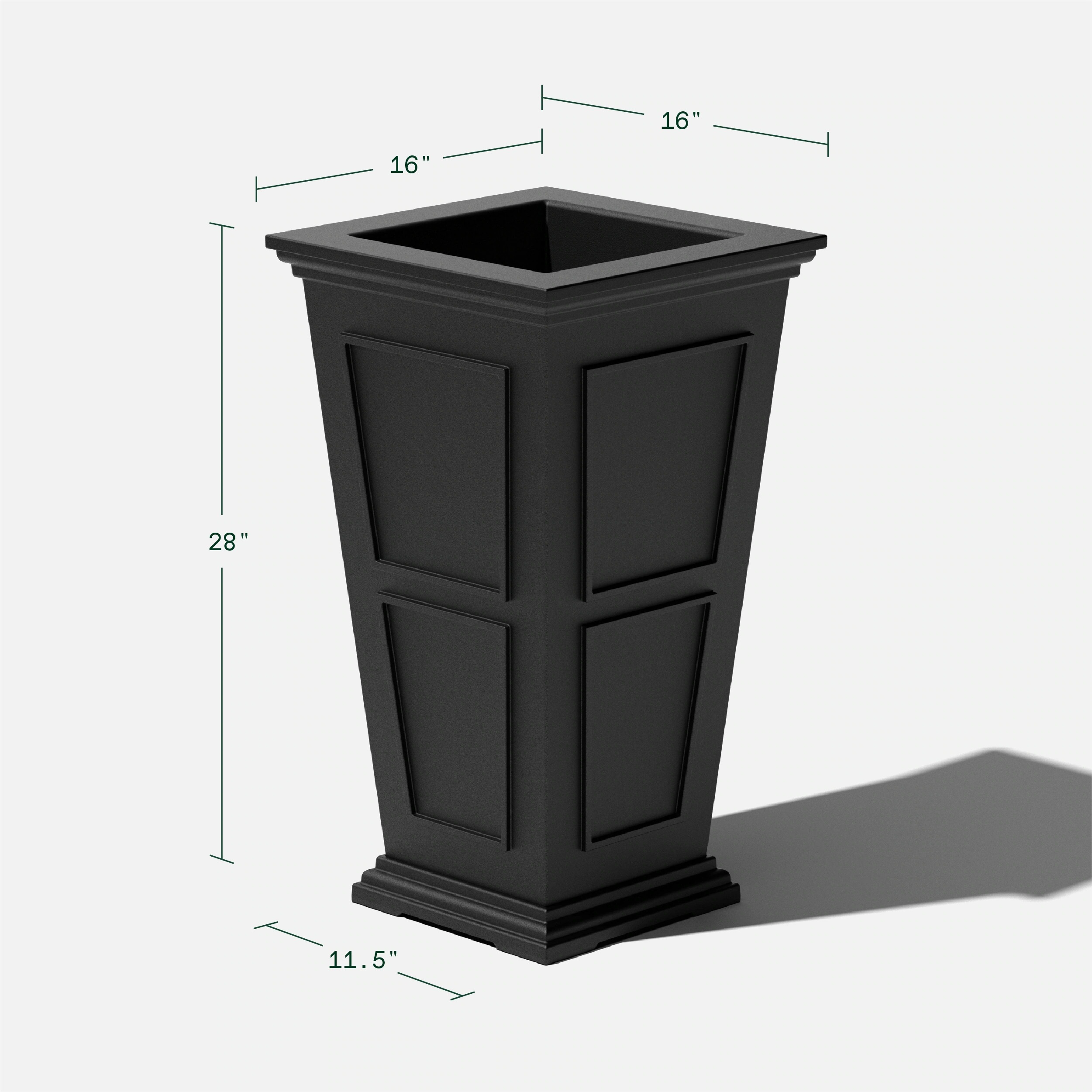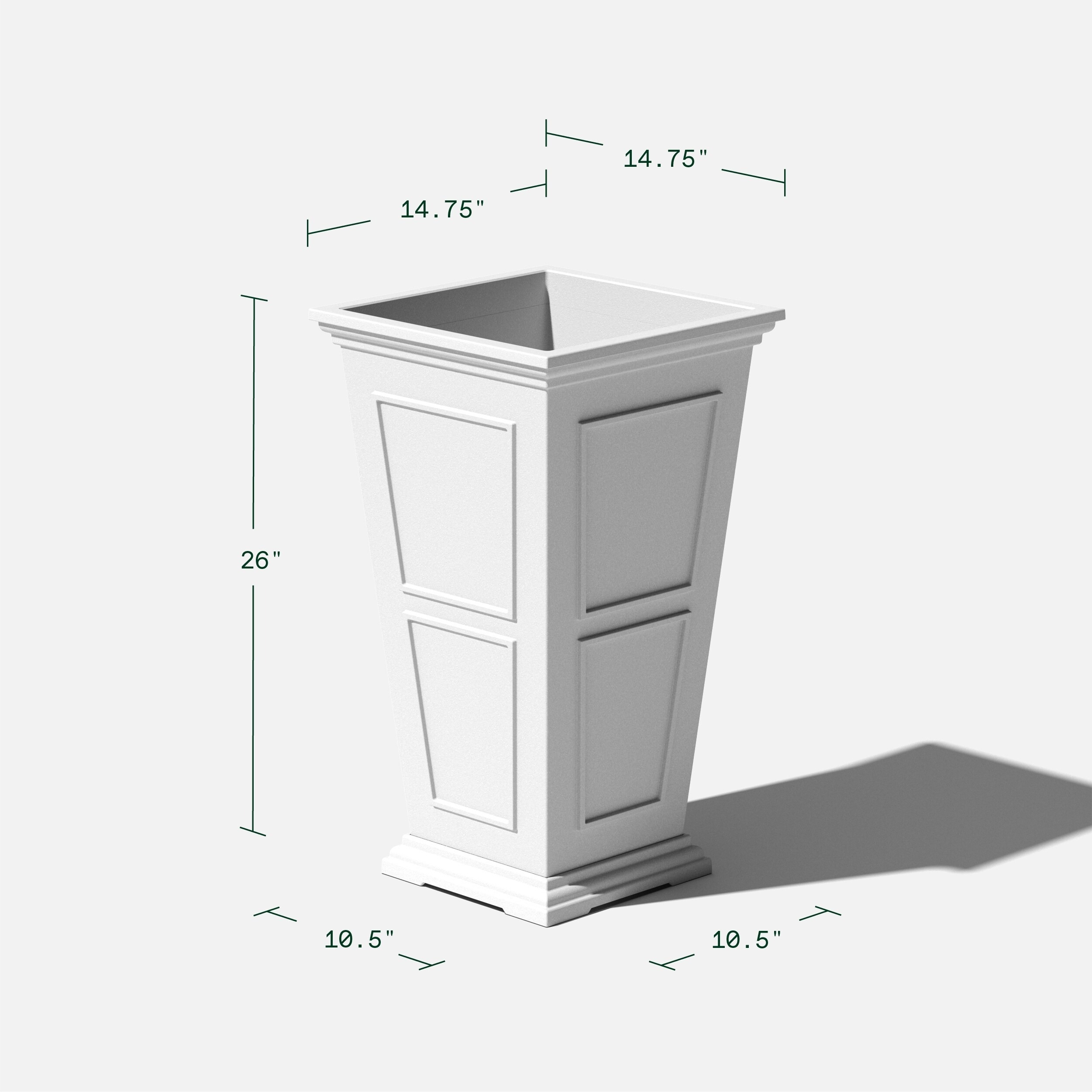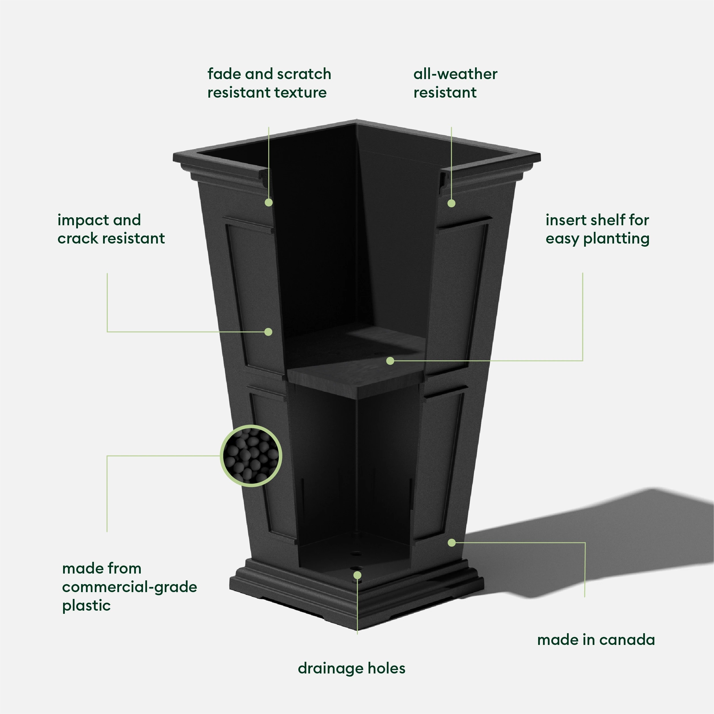 Taking inspiration from lush estate gardens, the Square Tall Planter combines traditional design with modern technology making it best suited for the front porch or patio. Featuring a removable insert bucket, the Square Tall Planter makes it easy to switch out plants, flowers or shrubs and pre-drilled drainage holes help prevent overwatering. This sturdy yet lightweight planter is proudly crafted from high-grade recycled plastic, making it resistant to cracks, fading and UV and allowing it to withstand extreme temperatures ranging from -20 to +120 degrees. With the perfect balance of design, structure and purpose, the Square Tall Planter pairs perfectly with any indoor or outdoor arrangement to make a grand statement.